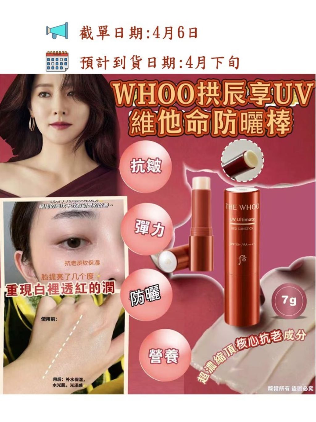 🌸韓國 Whoo后 拱辰專業禦光UV維他命防曬棒7g