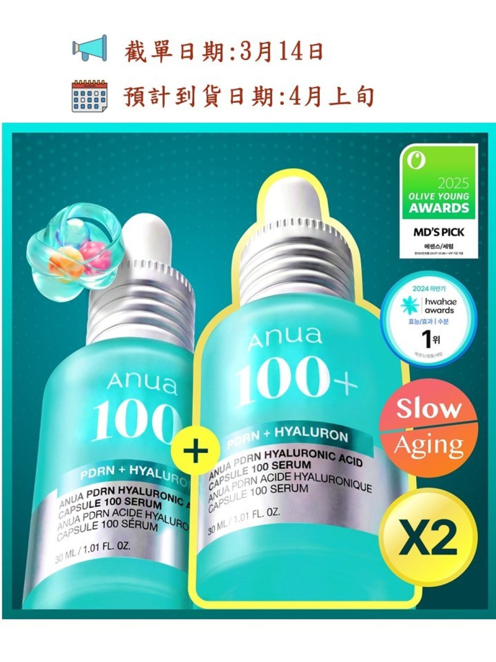 🌸韓國Anua PDRN玻尿酸膠囊 精華30ml + 30ml 套裝
