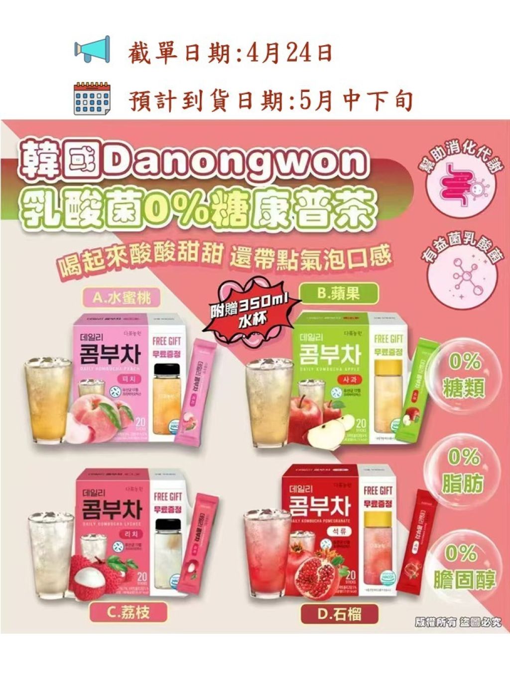 韓國Danongwon乳酸菌0%糖康普茶(附贈350ml水杯)