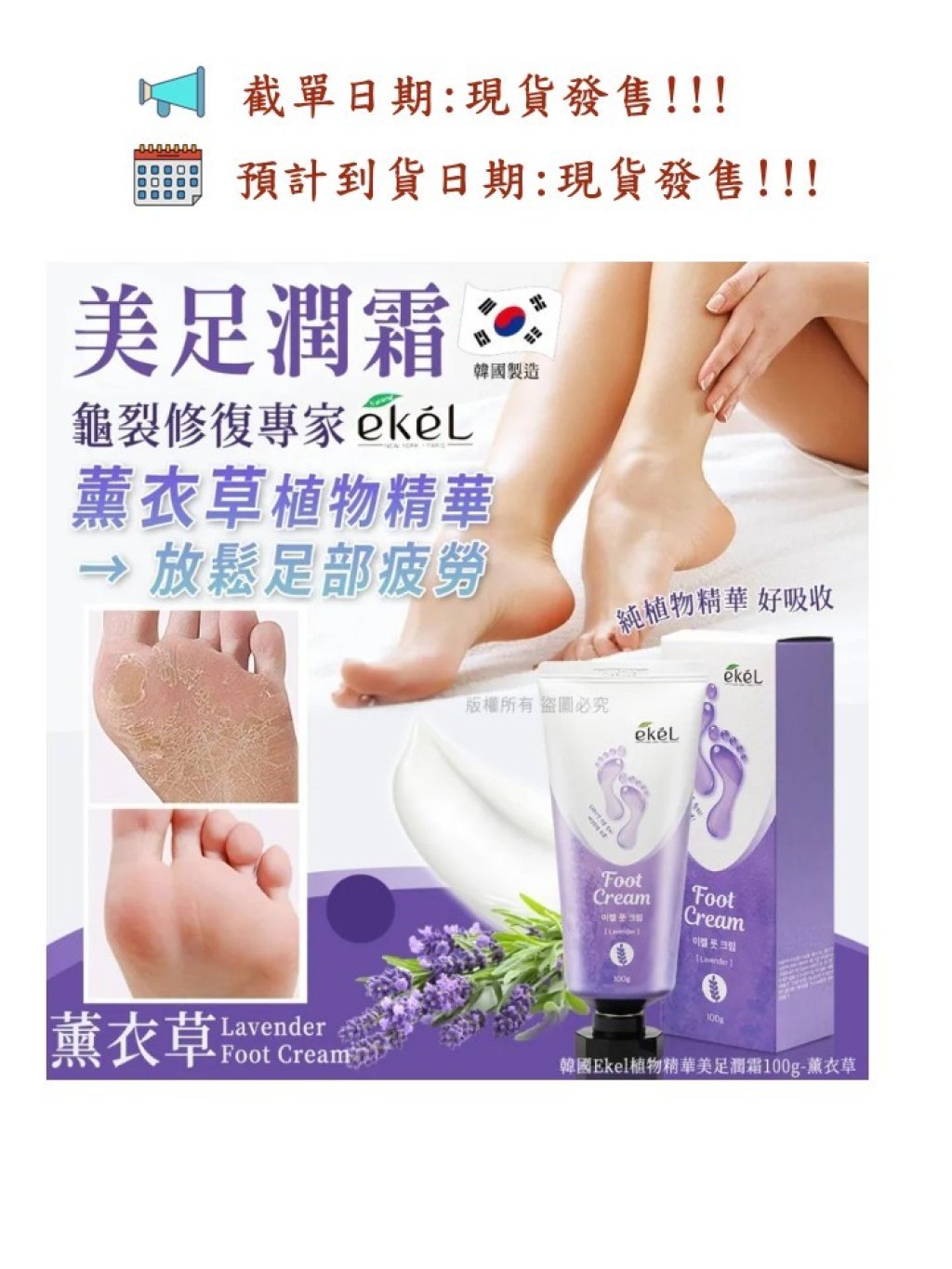 🌸韓國Ekel植物精華美足潤霜100g-薰衣草 (3支/套)