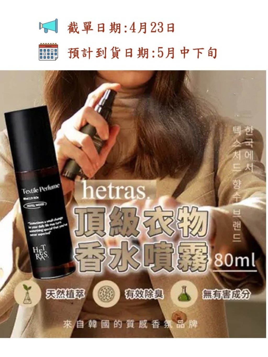韓國HETRAS. 頂級衣物香水噴霧 80ml (Stock)