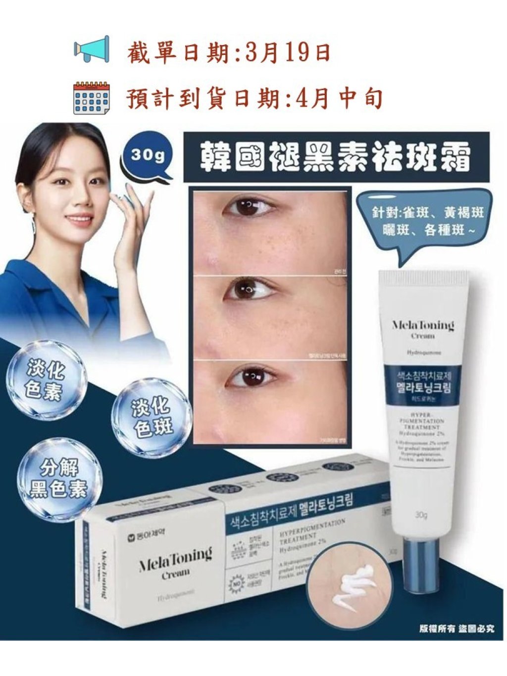 🌸韓國Mela Toning Cream 退黑素祛斑霜 30g💙🤍