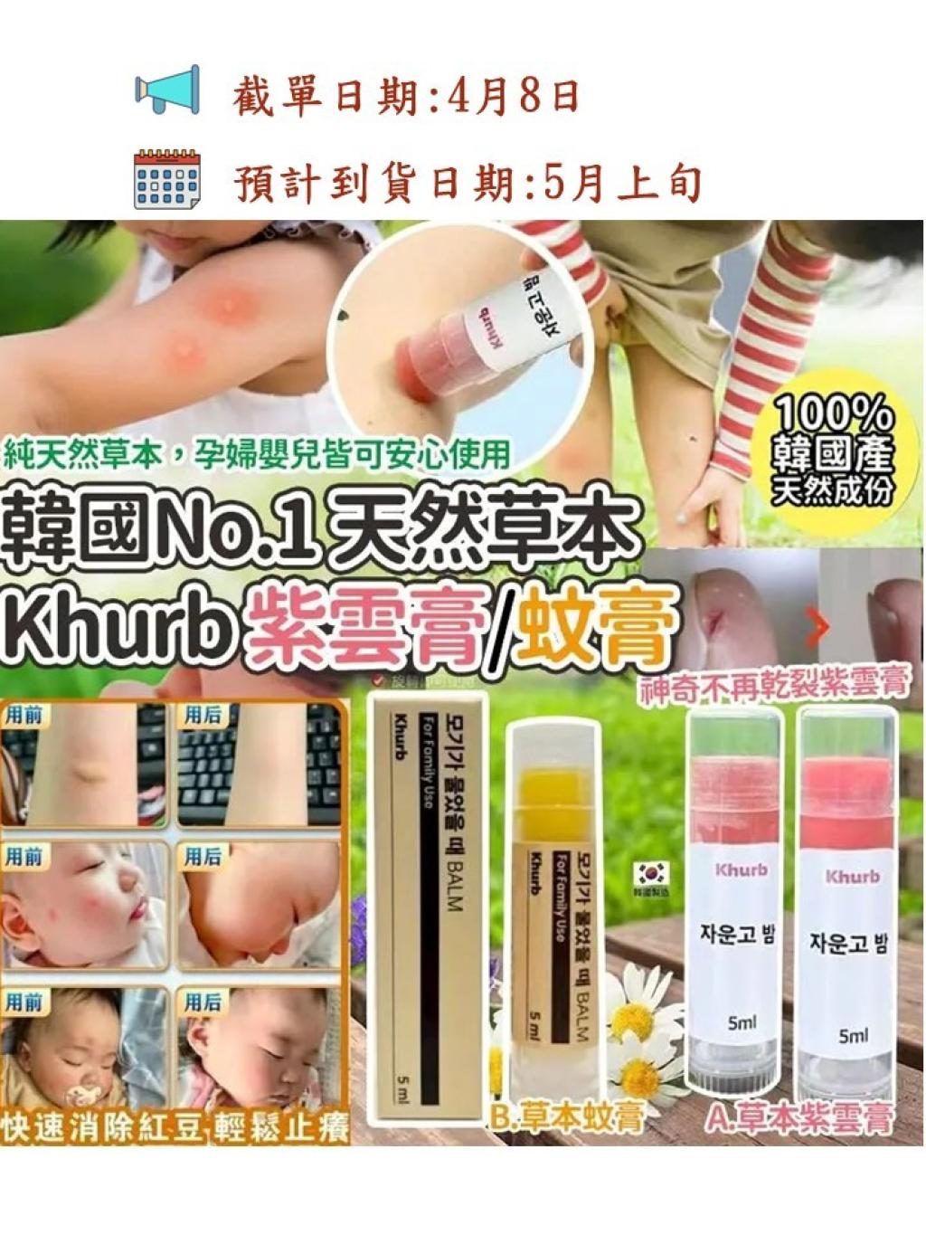 韓國No.1天然草本成份Khurb紫雲膏/蚊膏5ml (2支/套)