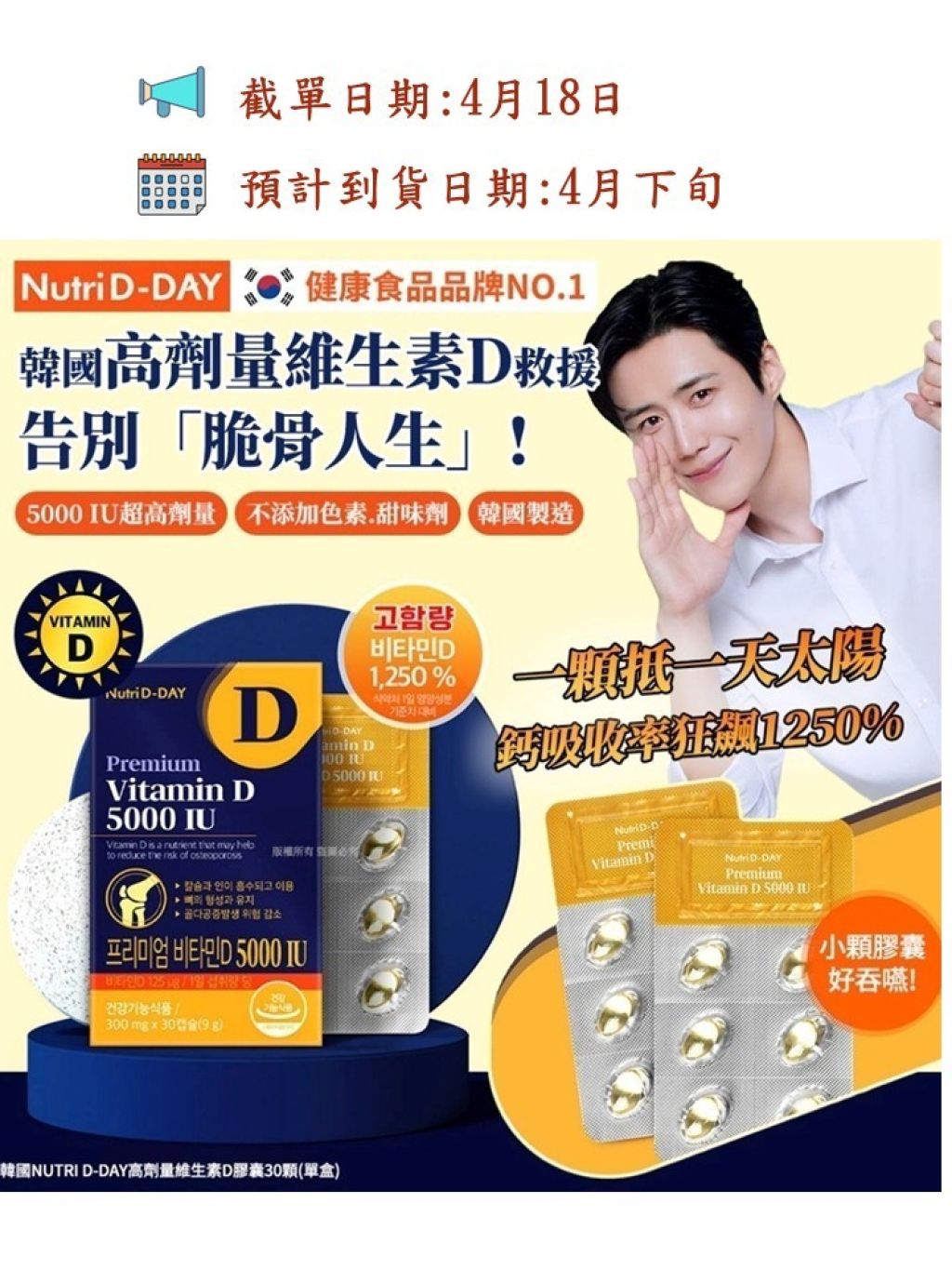 韓國Nutri D-DAY高劑量維生素D膠囊30顆 (只限批發會員下單)