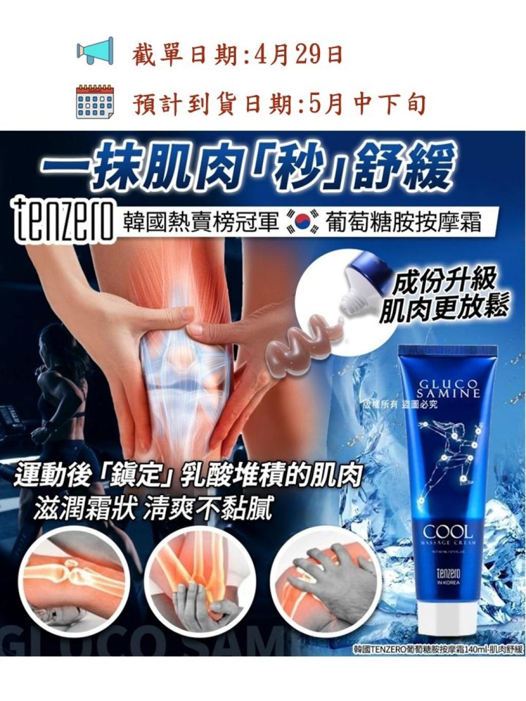 * 韓國 TENZERO 葡萄糖胺按摩霜 ~ 是你運動後後的最佳選擇 !~