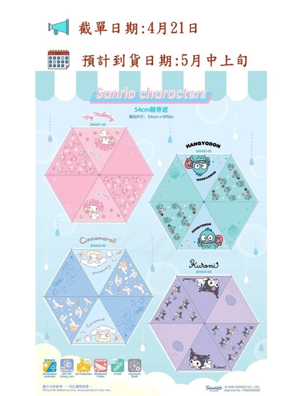 🟡 2026 Sanrio Characters 54厘米縮骨遮 🟡