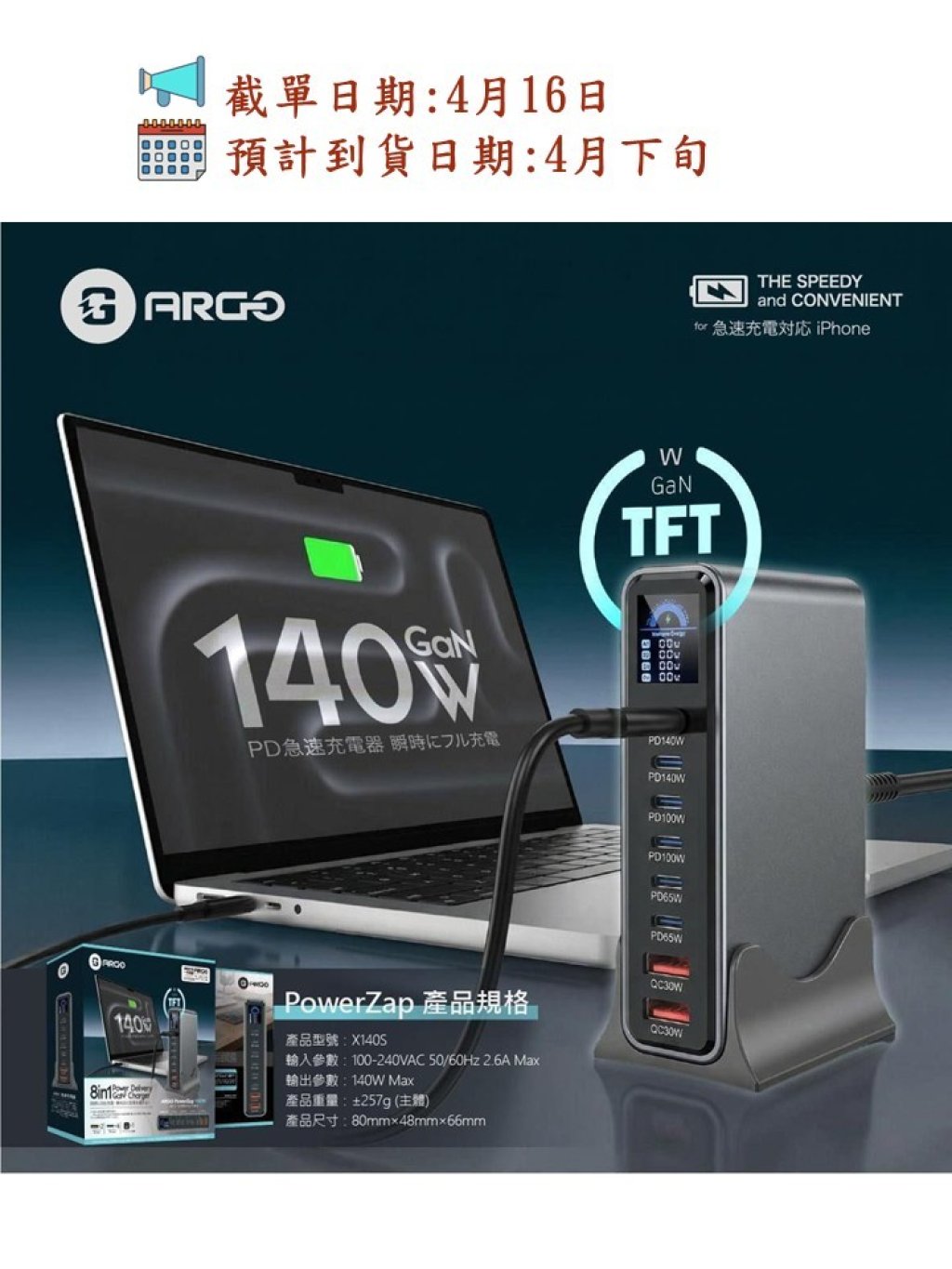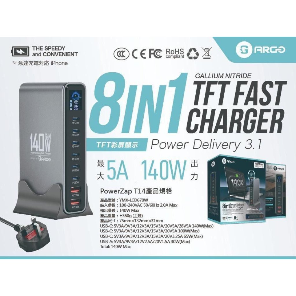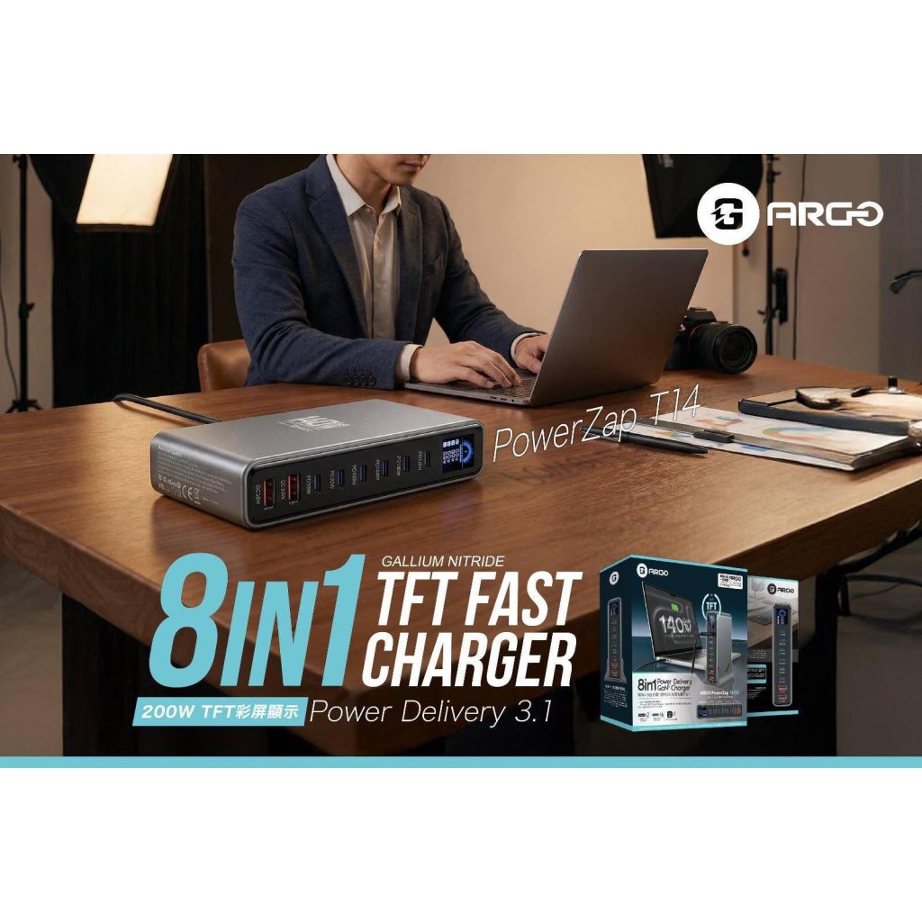 🟡ARGO PowerZap T14 140W 超薄 GaN 充電器🟡
