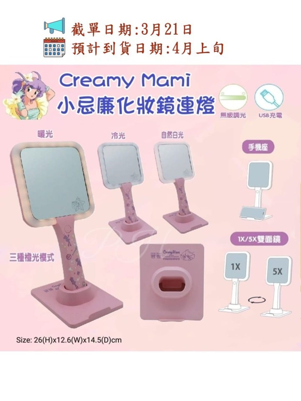 🟡Creamy Mami 小忌廉化妝鏡連燈🟡