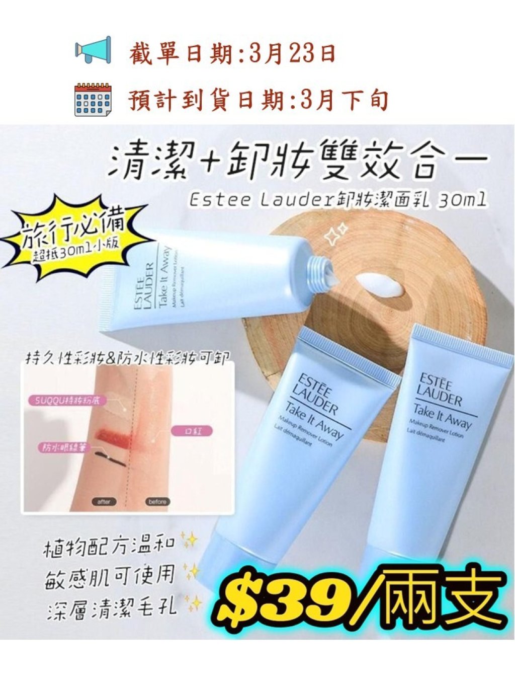 美國製🇺🇸 ESTEE LAUDER 清爽卸妝乳(30ML) 2支/套