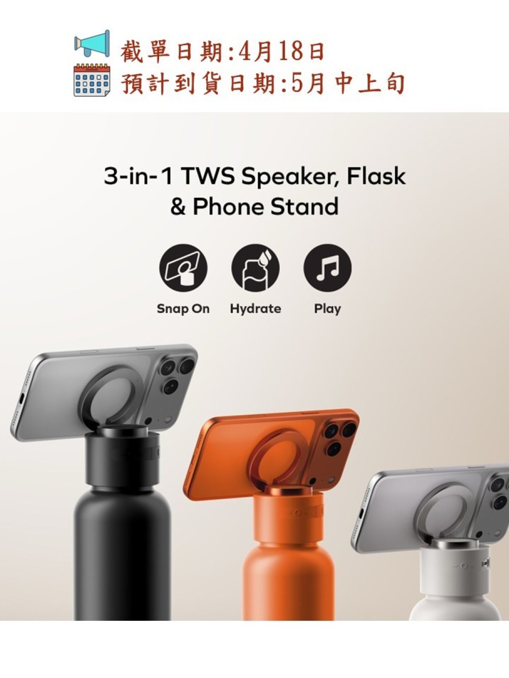 * 革命性三合一設計: 完美揉合頂級保溫瓶、無線喇叭及磁吸手機支架,盡顯時尚簡約美學