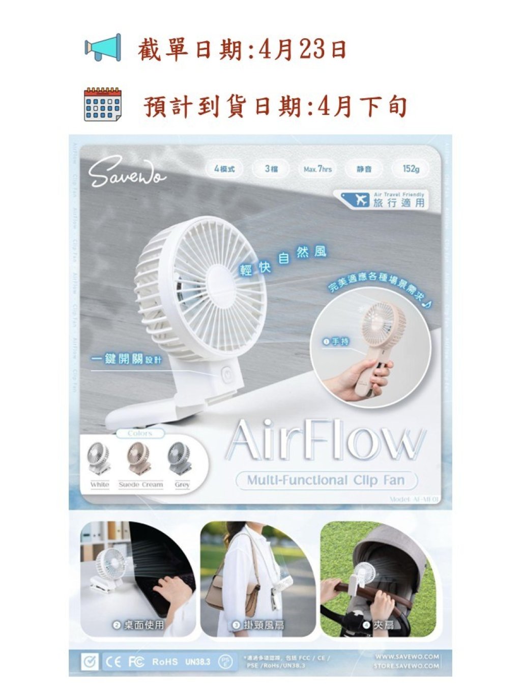 🟡SAVEWO AirFlow ClipFan AF-MF01多功能夾扇🟡