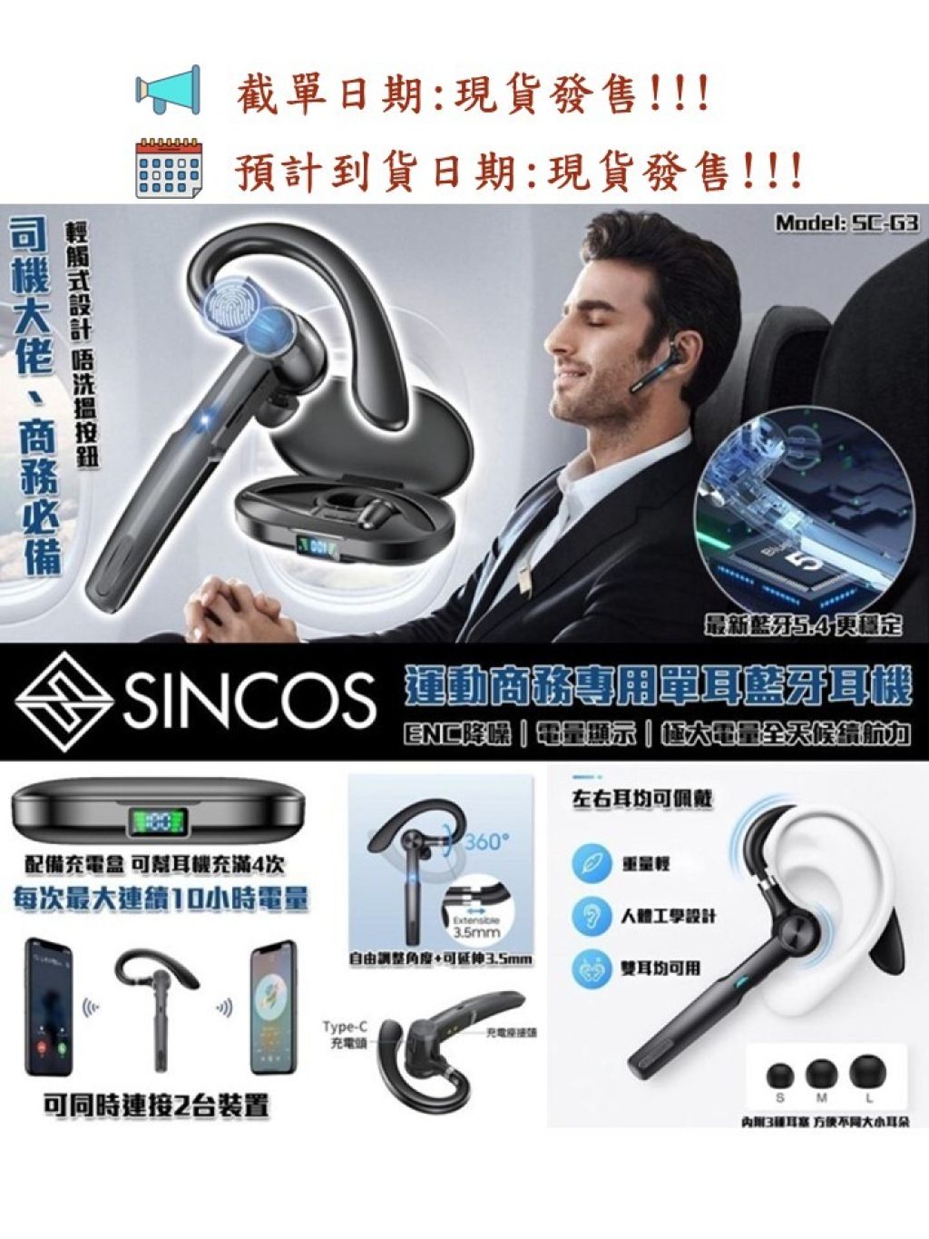 🟡Sincos SC-G3 商務專用單耳藍牙耳機🟡
