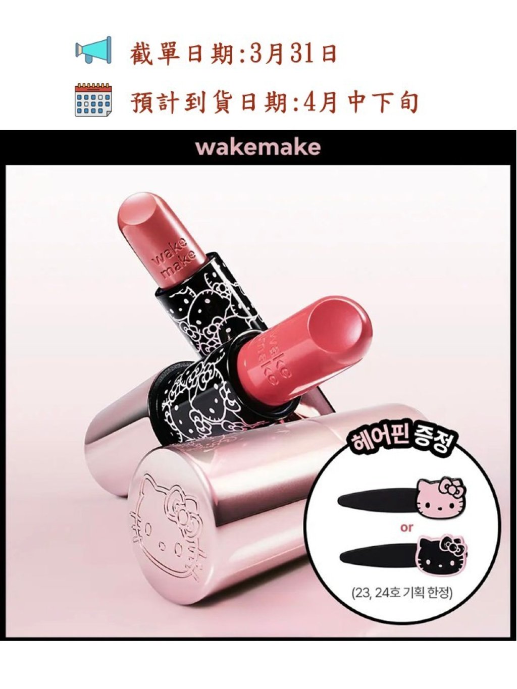 超靚呀😍🇰🇷韓國最新出🆕🇰🇷WAKEMAKE x Hello Kitty 黑色特別版 柔亮水潤唇膏💄HEALTHY GLOW BALM STICK +送髮夾